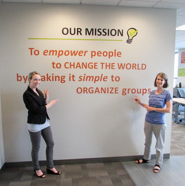 You will see that the mission of SignUpGenius takes center stage, or rather, center wall, leading visitors into the space. "Seeing the mission statement each and every day, front and center, provides an important reminder of just what we are here to do," says Kate White, Marketing Strategist. "Some may say that we are overly ambitious by aiming to 'change the world,' but when we see the impact that our site has on individuals - a simple fundraiser helping clothe a family in need or educate our future leaders - we see that each sign up can make a true impact. It's exciting to see our company continue to grow, serving more and more people in this way."