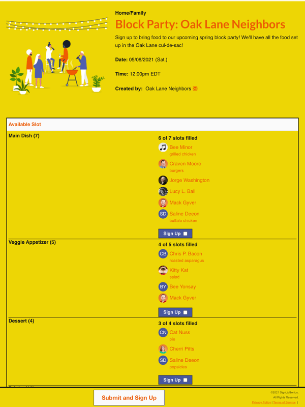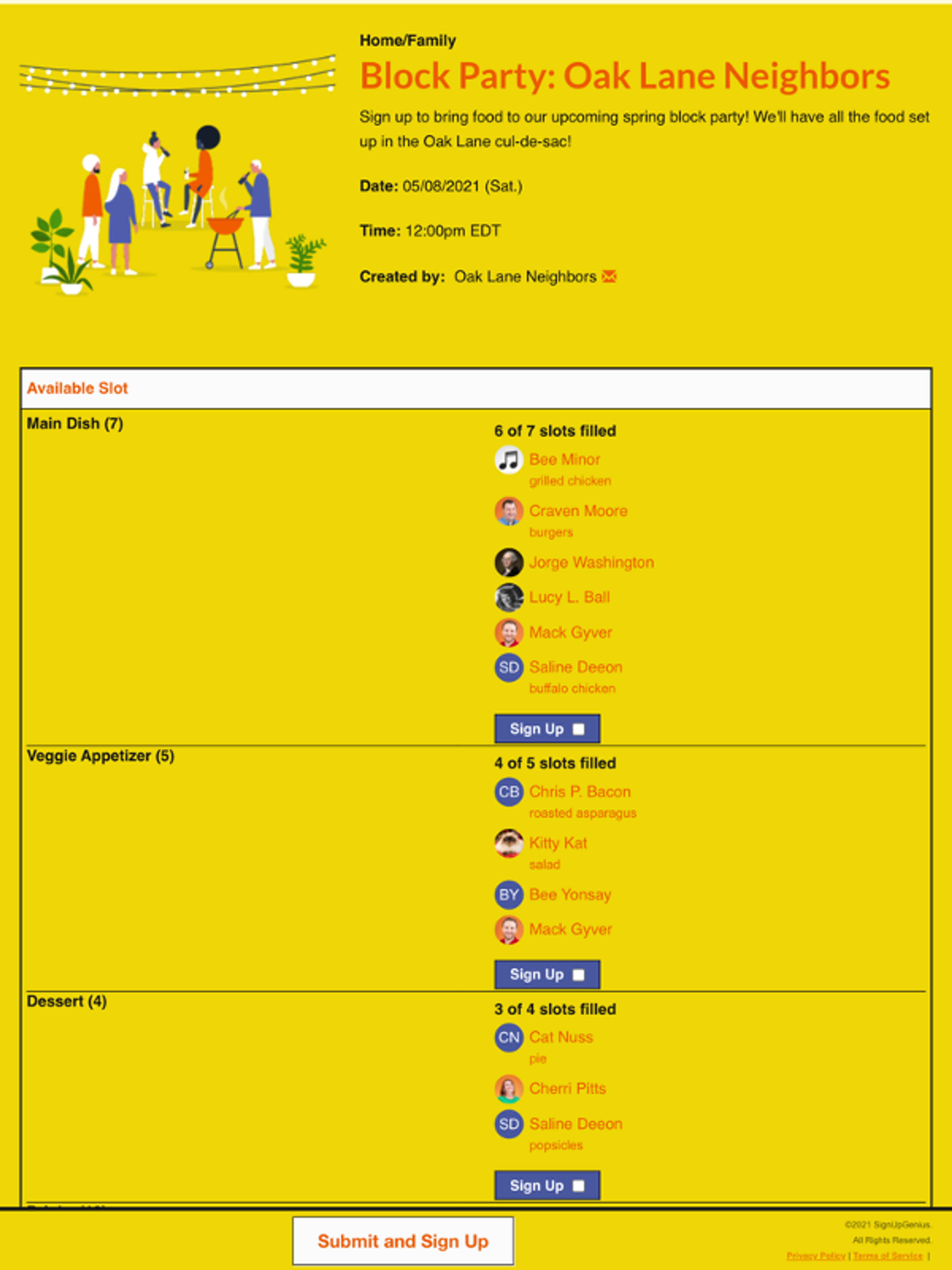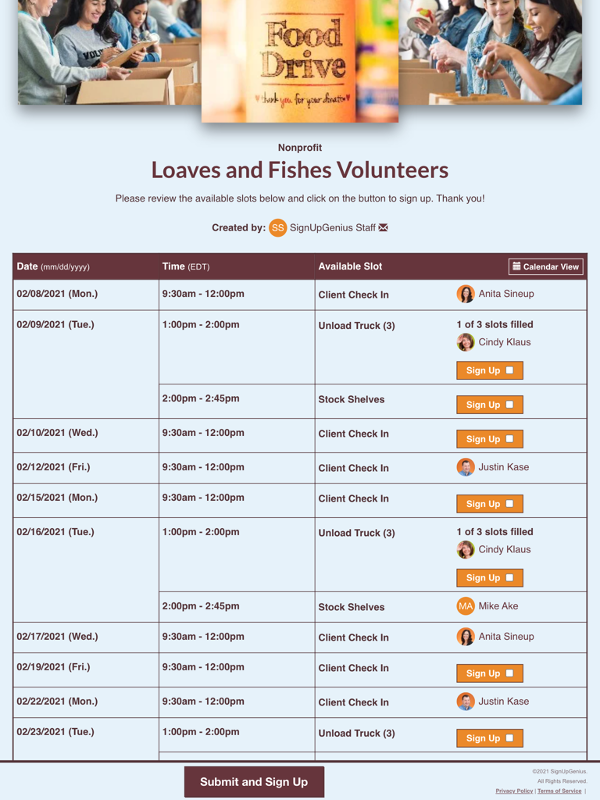 You can easily organize a group of volunteers or a food drive with an online sign up. Get the word out by sharing your sign up in an email and on social media.