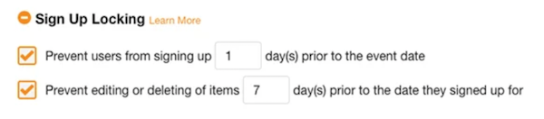 Need to create deadlines for registration? Use our start and stop dates feature to open and close the sign up. This will allow participants to only sign up within the window of time you have selected.