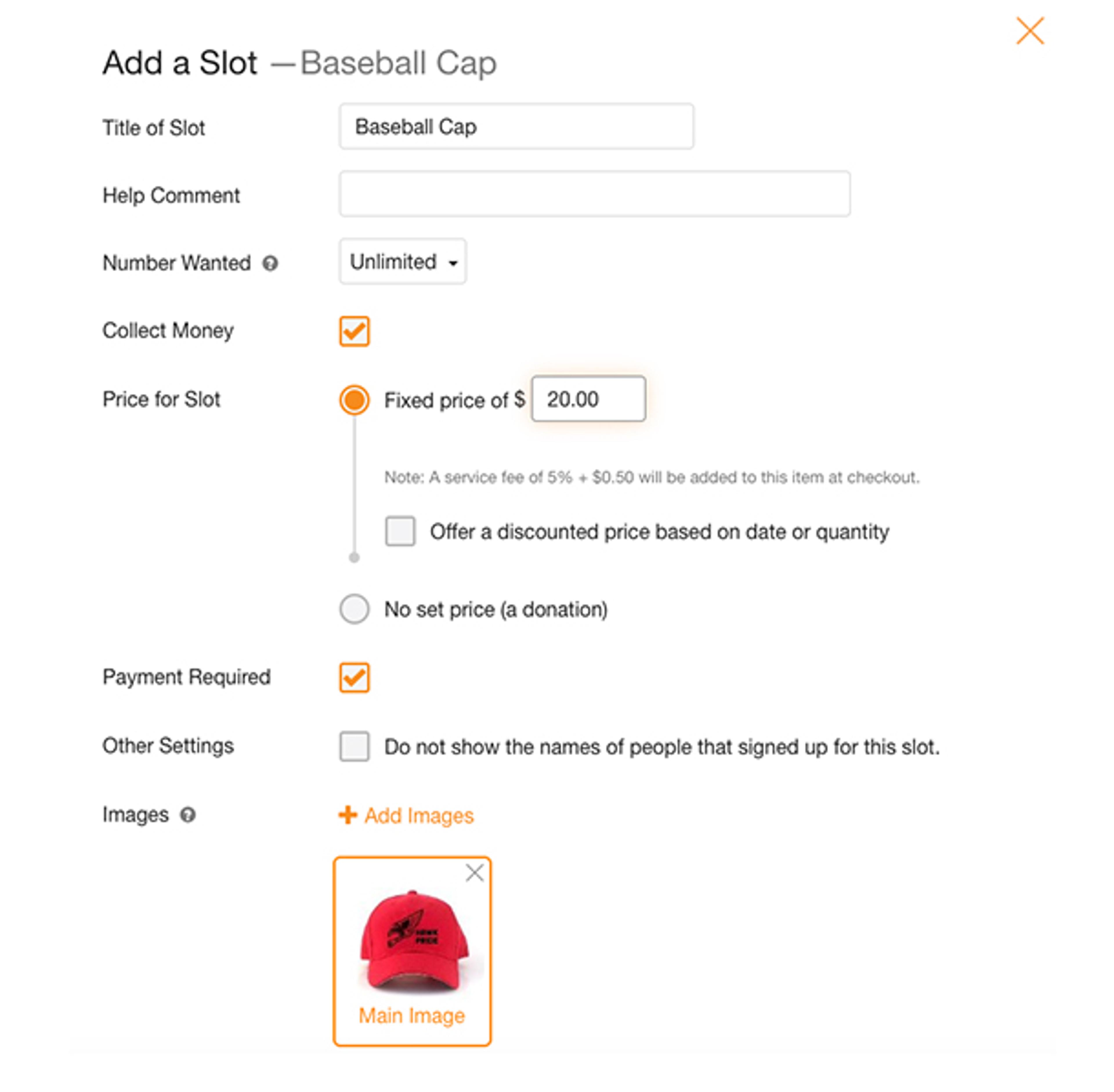 Start by creating a sign up or editing a sign up you've already created. In the Slots tab, select the option to Add Slots and select the box for Collect Money.