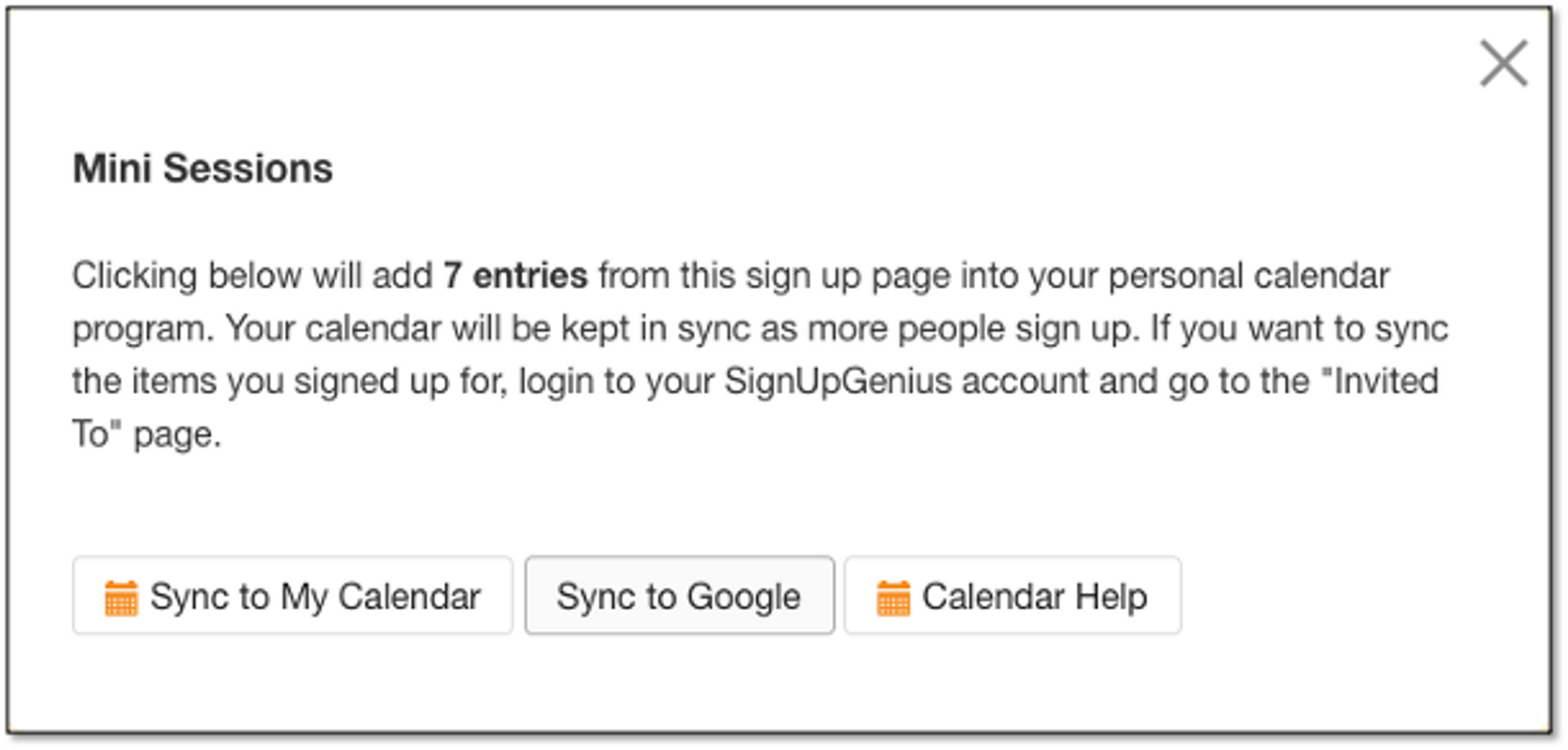 You can sync one or multiple sign ups to your calendar program. Once you've selected the sign up, you can easily sync it to your calendar program. It's so easy, you can link the calendar in a matter of a minute or two.