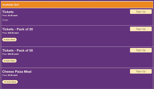 This feature removes the display of the maximum quantity requested on sign up slots. This is particularly helpful when you have an open-ended need, such as a fundraiser with unlimited donation opportunities or an unlimited number of spots available for an online class.