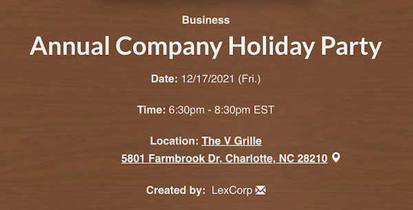 You've gotten the word out, and now it's time to remind people to come to the wonderful event you planned. With our paid plans, you can craft a custom message to remind people about anything related to your party over text or email. Make sure to include your phone number on your account settings page so people can directly text you to let you know if they are running late. Genius Tip: We recommend sending a reminder to dress in the holiday party theme, bring food, or purchase gifts ahead of the big day.