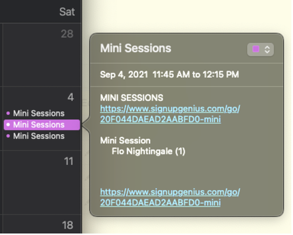 Calendar syncing is an easy way to help your clients manage their schedules and keep their appointment top of mind. Life gets busy and appointments are easily forgotten, but when you integrate calendar sync with your sign ups, appointments are automatically added to client's personal calendars when they sign up for a slot.