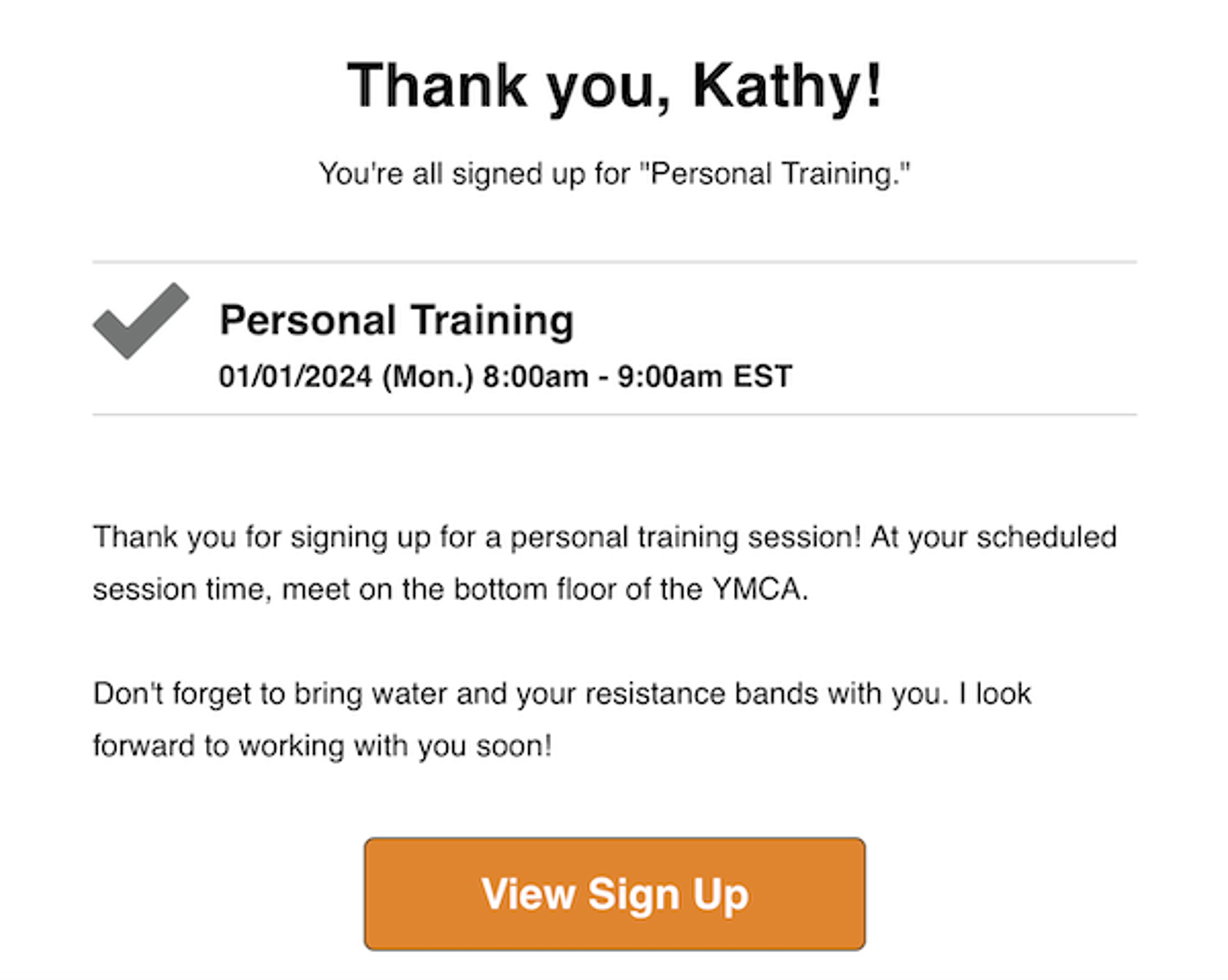 You can also include the link to your sign up in newsletters or social posts. With our paid plans, you can customize sign up URLs to match your branding and make it easier to promote your sessions. Spreading the word about your personal training is a key step - if you want to fill your schedule with clients.