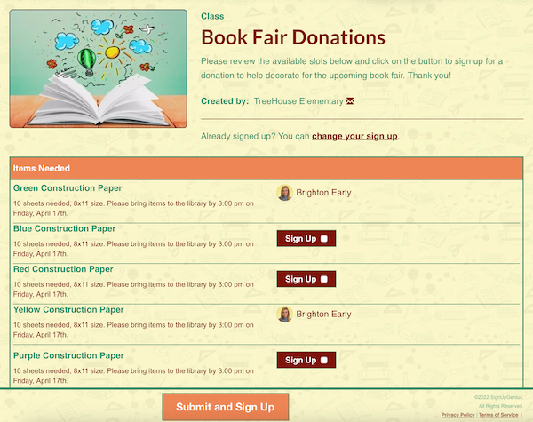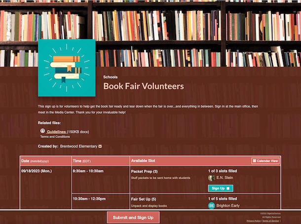 The biggest need you will face when planning a book fair is recruiting help from volunteers, and in turn the management of their time and shifts. Using an online sign up can simplify this process and allow you to secure the help you need to make your book fair a success. Trust us, scheduling volunteers has never been easier!