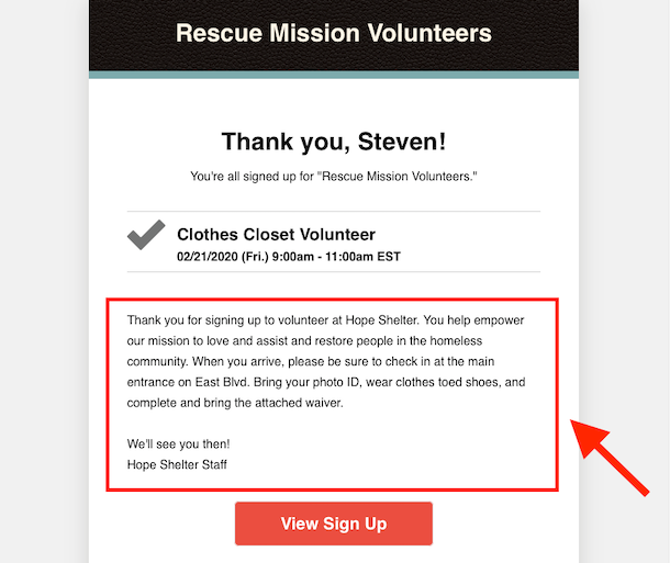 It's easy to customize your SignUpGenius messages with email templates. You can include specific, repeatable information in your confirmation and reminder emails, saving you and your participants time at the event.