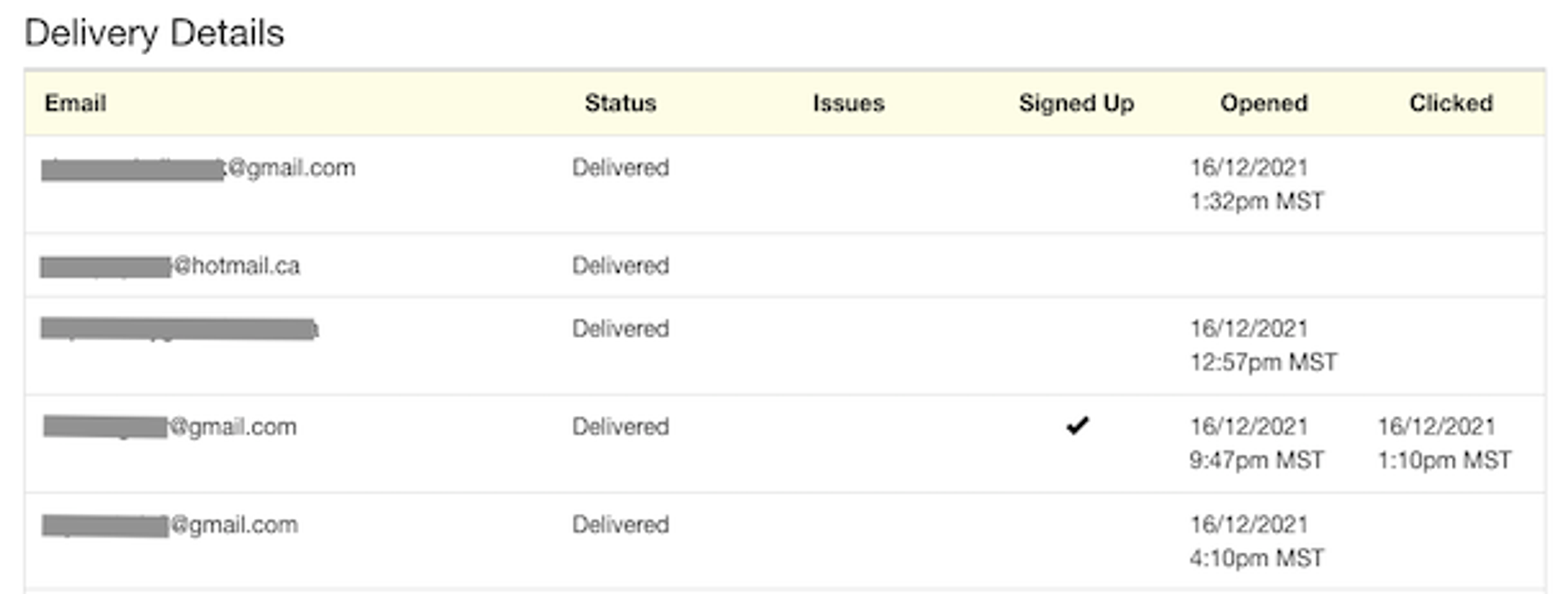 • Verify Email Addresses - In the Delivery Details area, you can view the email addresses for sent messages and verify that the message was delivered to a particular email address. If it was not delivered, you'll want to verify that the email address is correct.