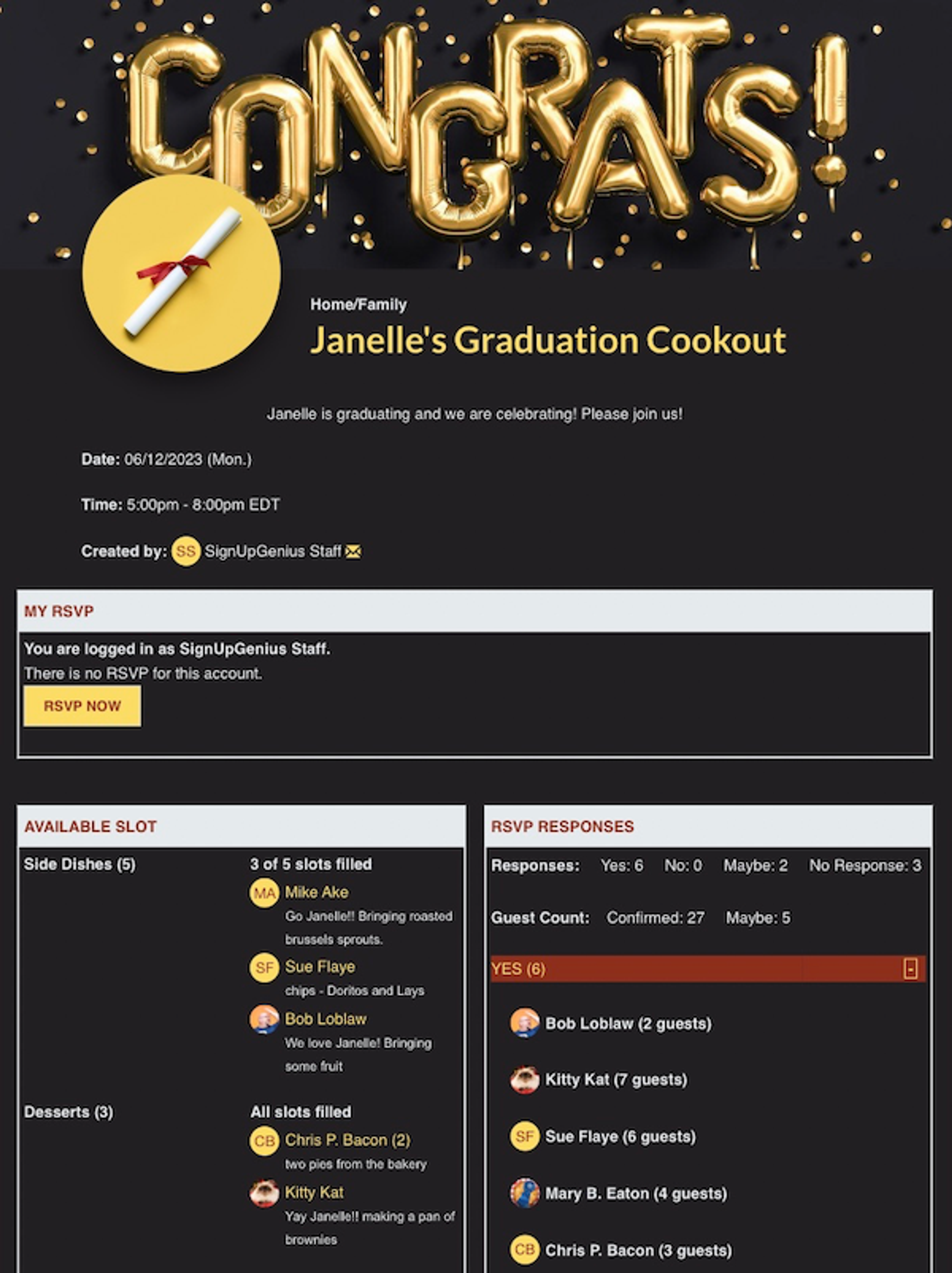 Sign ups help minimize the busy work of planning events, so you have more time to celebrate with your students! Along with class parties and school festivities, it's the perfect time to invite friends to honor a graduate or kick-off summer with a cookout or pool party.
