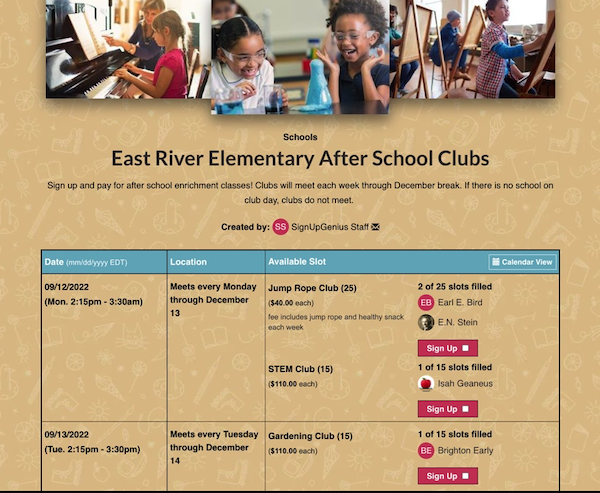 Does your school offer clubs for activities like chess, debate, STEM or Young Life? Make it easy for parents and students to sign up for clubs with an online sign up. You can set quantity limits for the number of maximum participants for each club, and request important information with our custom questions feature.