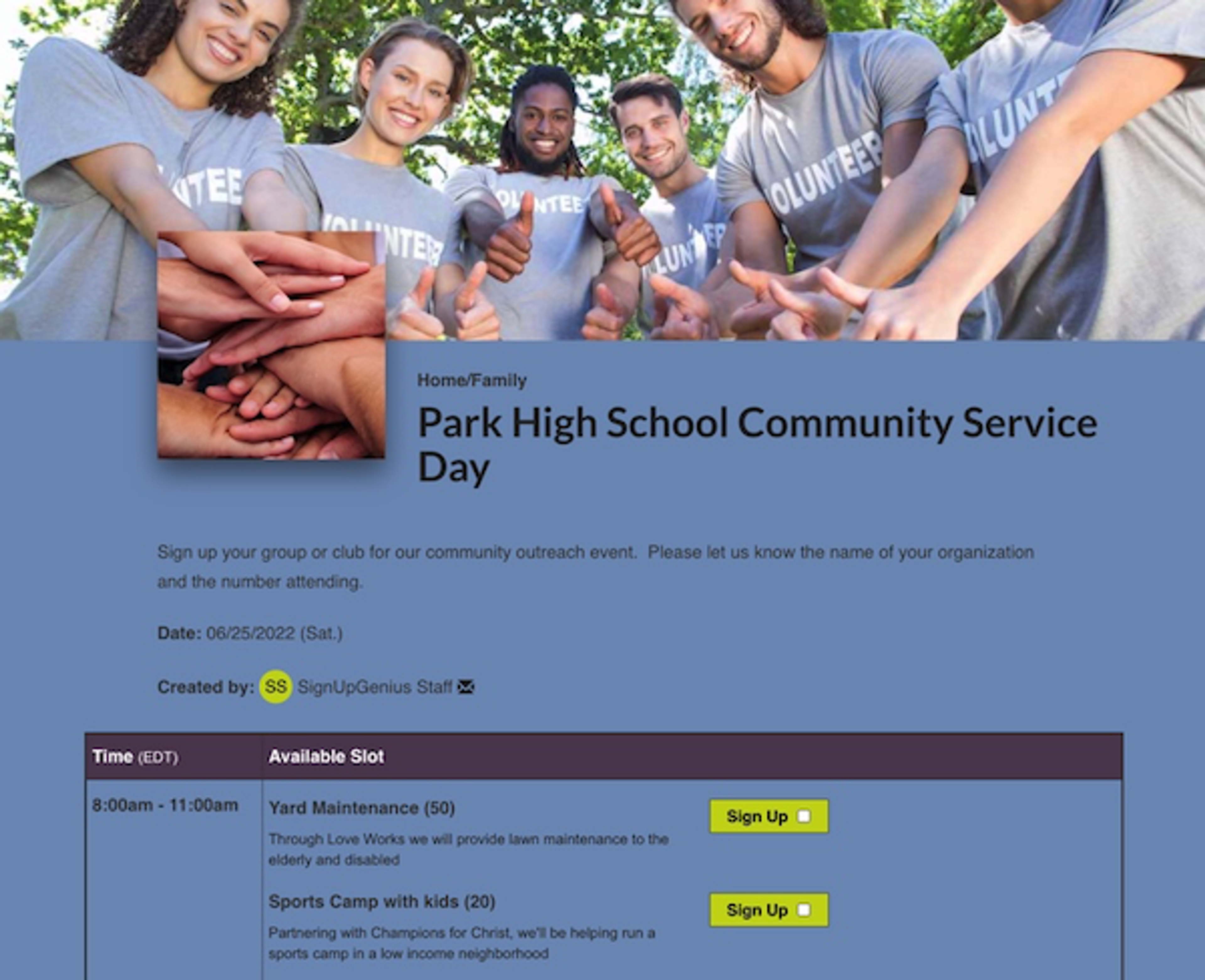 The possibilities are endless for students to explore new activities and follow their passions. Sign ups simplify event and volunteer organizing, giving students and staff more time to focus on meaningful opportunities.