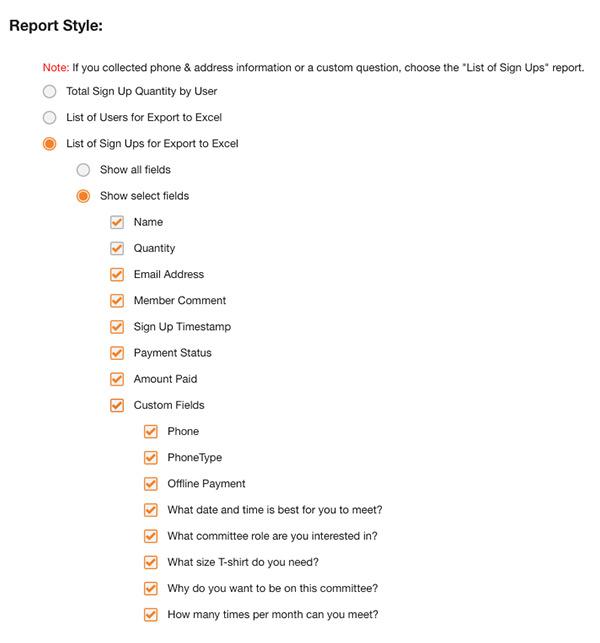 Once everyone has had a chance to sign up and complete the survey, you can view this data in a report. Access reports by clicking the Reports & Stats button in the Admin's Toolbar at the top of your sign up while logged in to your account, or directly in the Reports section of your account.