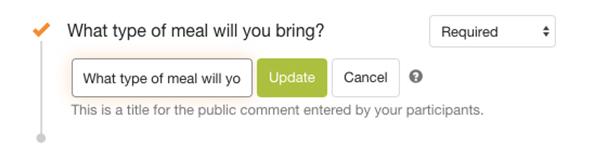 Genius Tip: In the Settings section, be sure to rename the Comment field and require a comment for participants to enter the dish they will bring. This way, participants can see the types of meals that others will deliver and avoid everyone bringing the same meal.