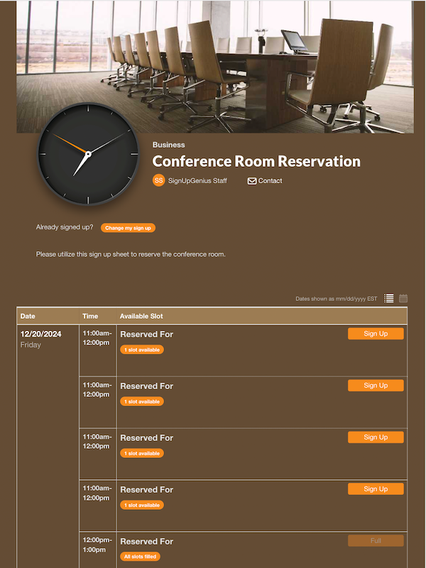 Using a sign up solution with powerful features can help HR managers simplifyscheduling for recruiting events and job interviews. It’s easy to set up an interview sign up by automatically generatingtime slots, so potential new hires can select an appointment that works best for them. The HR team can review the schedule in real time and eliminate constant back and forth through emails.