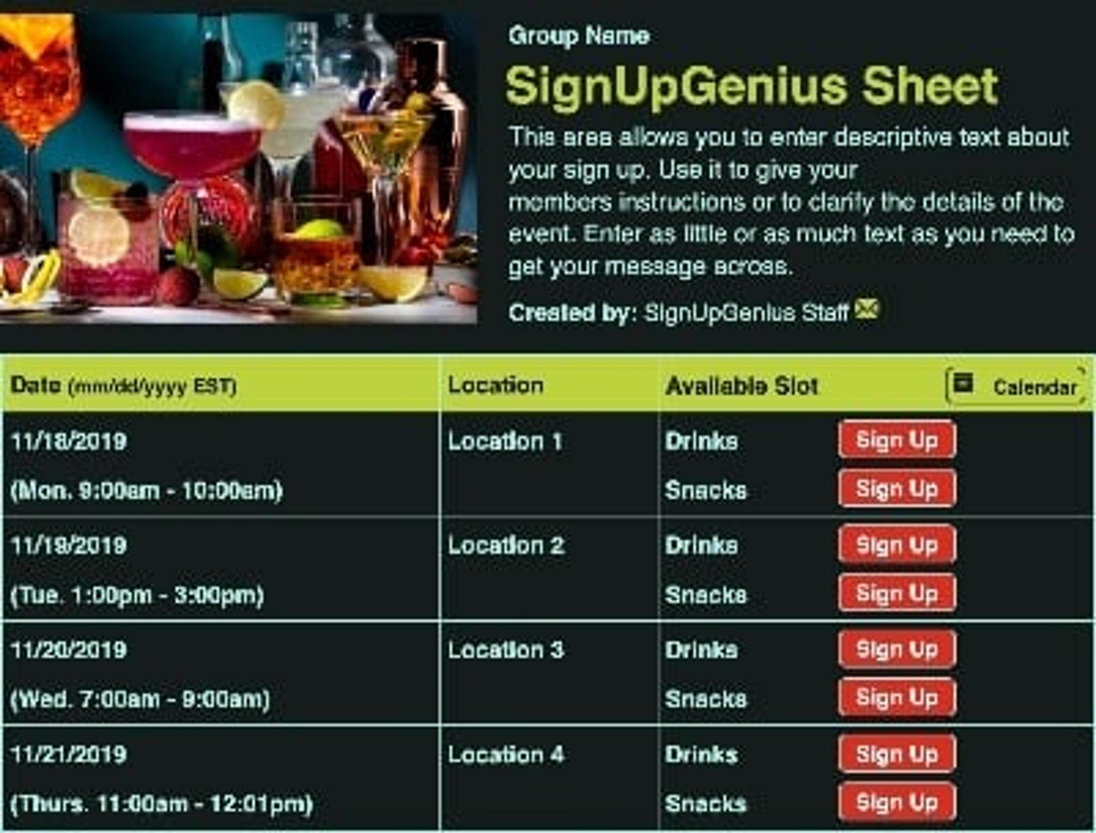 All SignUpGenius creators can choose from hundreds of our single-photo layout themes.