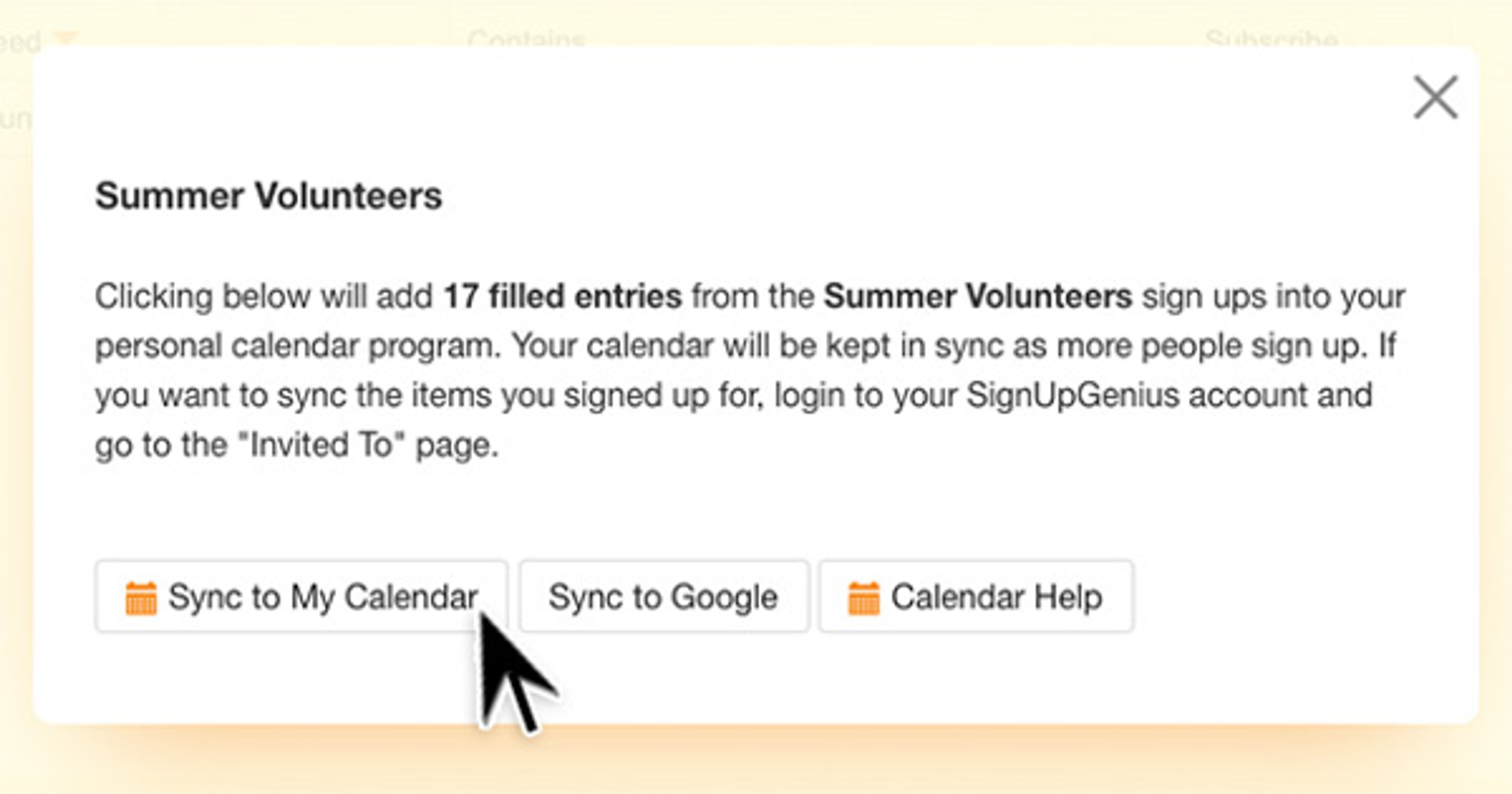 Sync Sign Ups to Your Personal Calendar