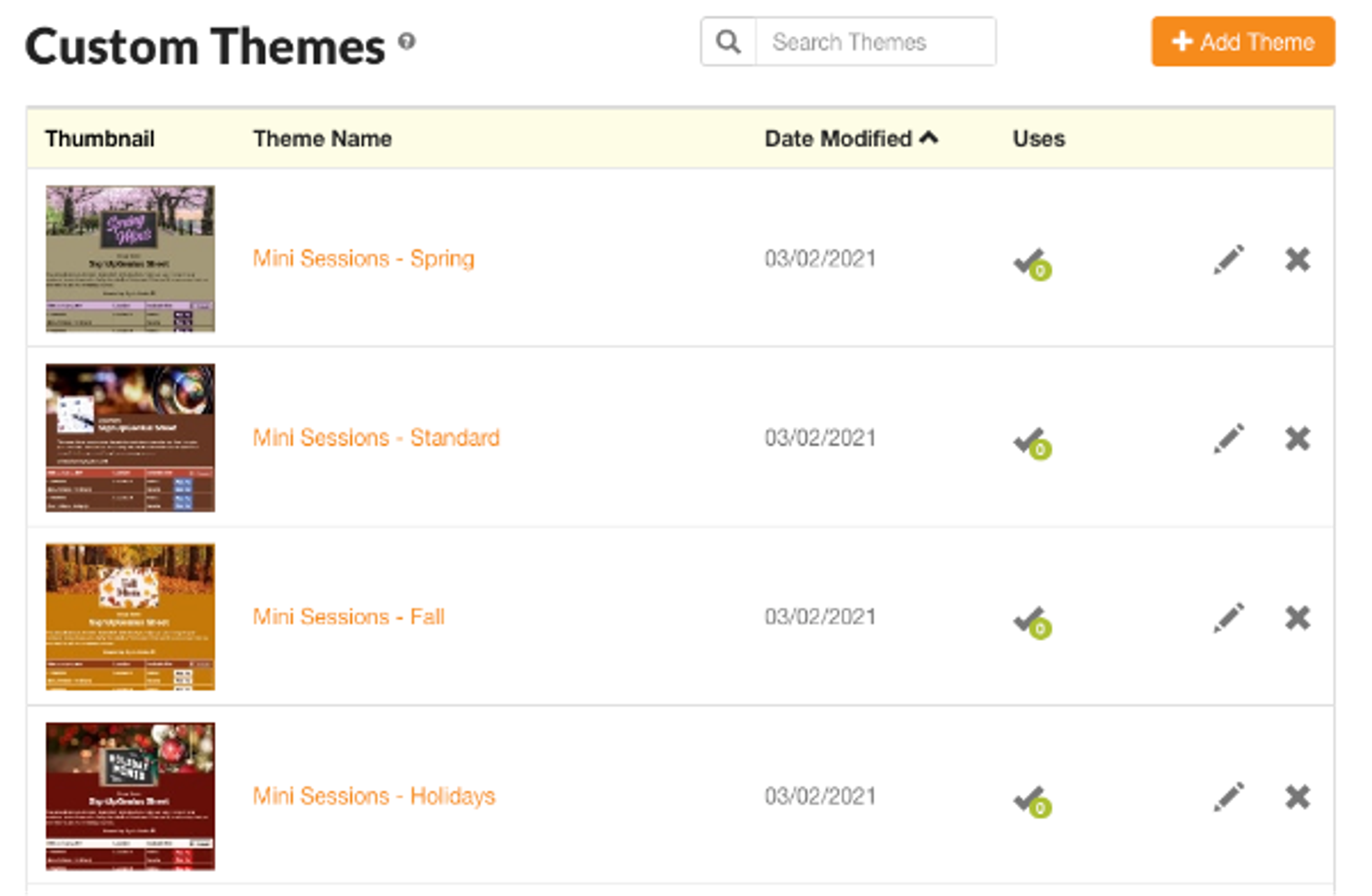 You can save a handful of templates that work for your typical types of sessions — for example, a template for spring, fall, the holiday season and so on.