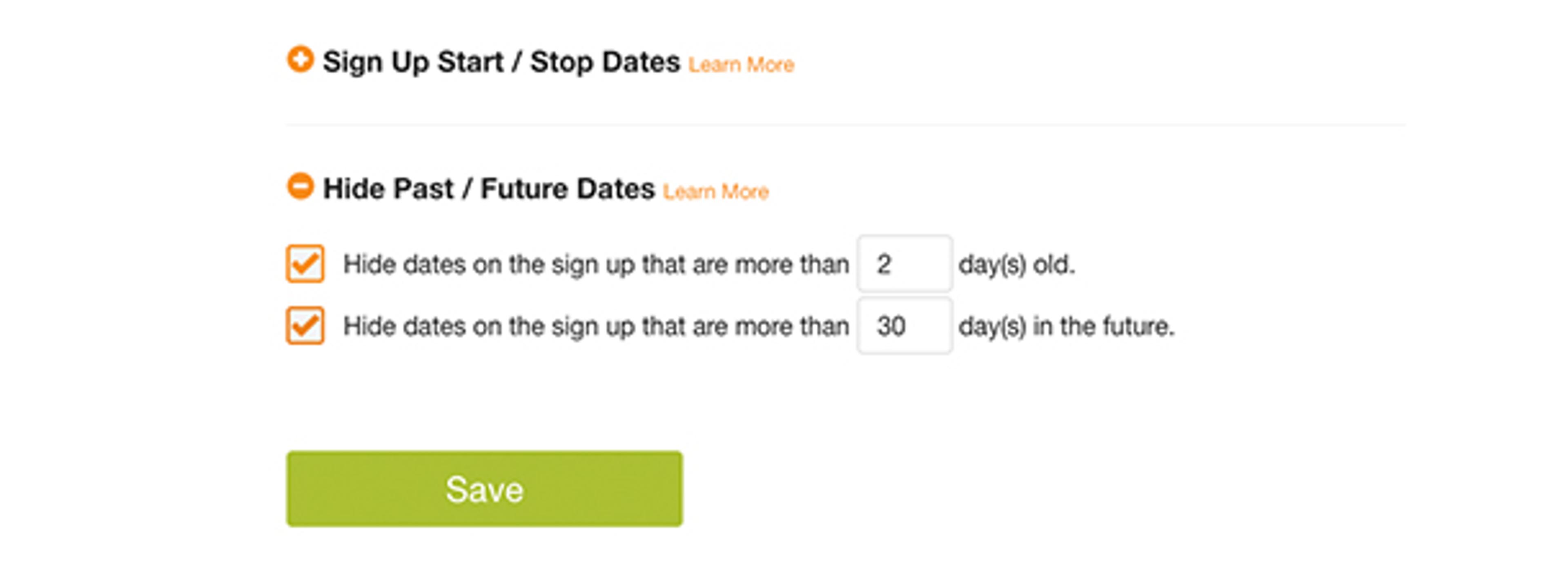 Similarly, you can hide past or future time slot dates to help keep the appointment booking process streamlined and focus attention on current slots.