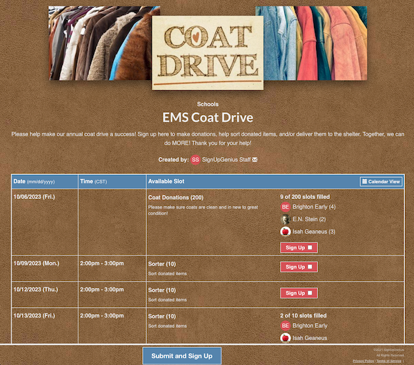 People still need necessities during the holiday season and clothing items to keep warm during the winter. You can organize a drive to collect essentials like toiletries and clothing; winter coats are often a high-priority item when temperatures drop. Connect with a local nonprofit to find out their top needs and create a sign up to request donations from your group.