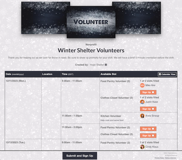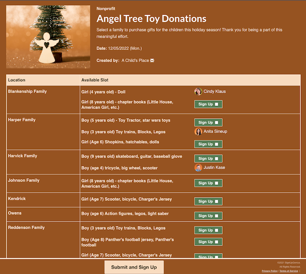You can coordinate a holiday service project in just a few minutes with an online sign up, offering your group an easy way to bring joy and comfort to others. Churches offer many opportunities to get involved with serving the community and the congregation during the giving season. Check out these tips to organize an angel tree and these Christmas volunteer opportunity ideas.