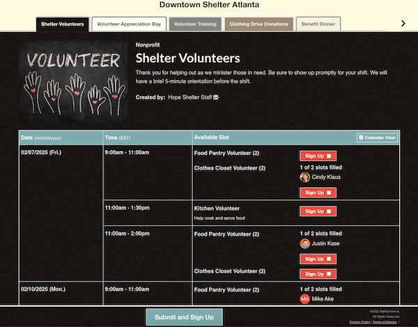 Want to grow volunteer support for your nonprofit or church this year? Online sign ups help provide a smooth experience for volunteers and save work for your staff. Sharing your service opportunities online gives volunteers the chance to choose times that are most convenient for their schedules. You can find out additional information from participants with the custom questions field such as t-shirt size or lunch preference.