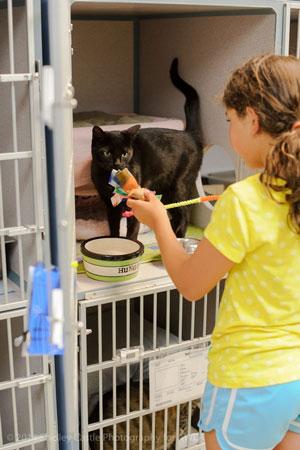 A visit to the Animal Welfare League of Alexandria, Virginia (AWLA) often provides a surprising sight for new visitors. During youth program times, local children read and watch movies with shelter animals.