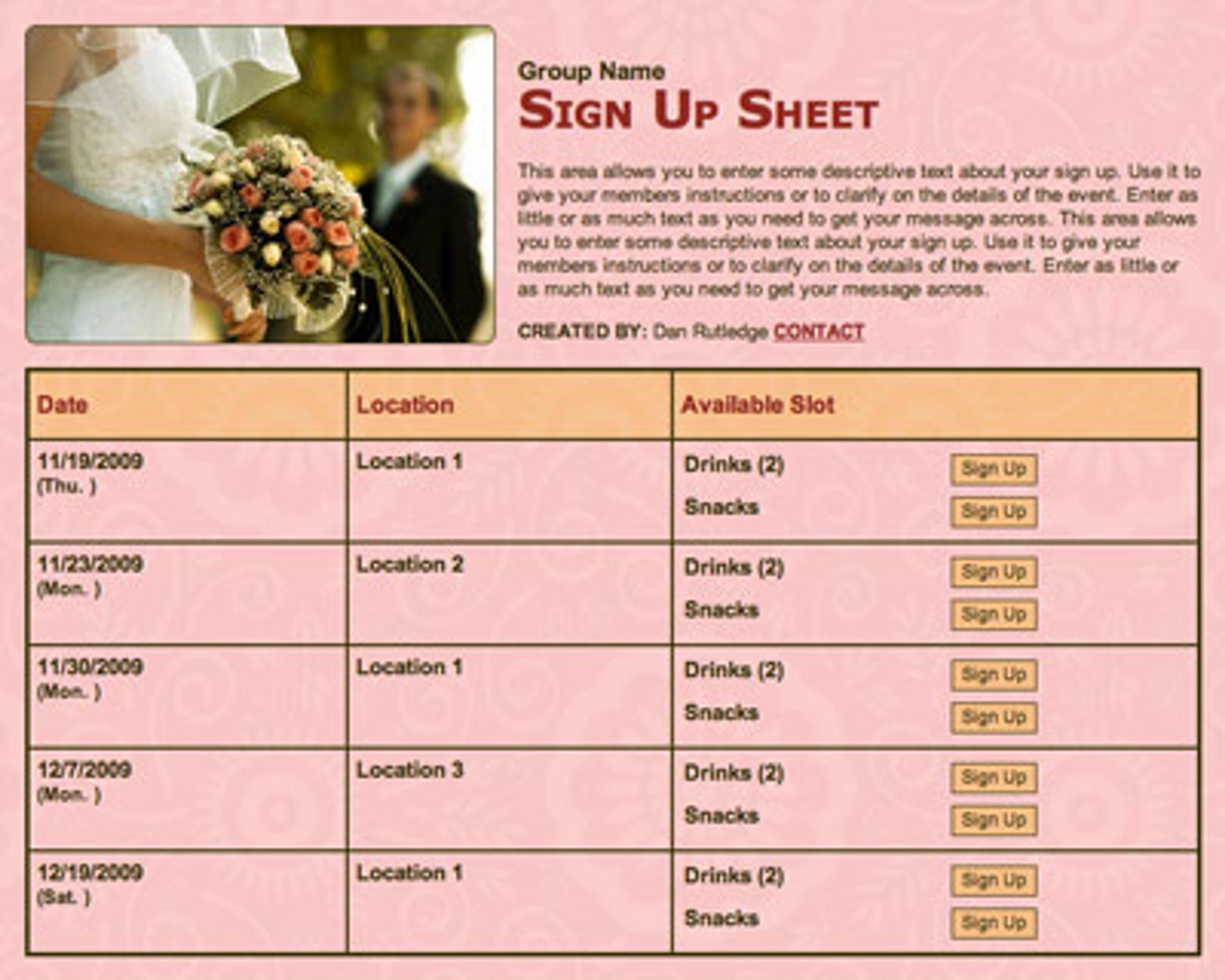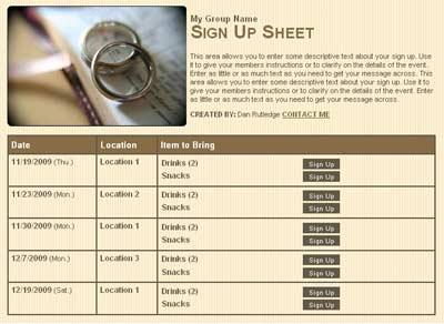 Organize the wedding guests on SignUpGenius to create a collection of everyone's best recipes into a special, personalized cookbook. SAMPLE