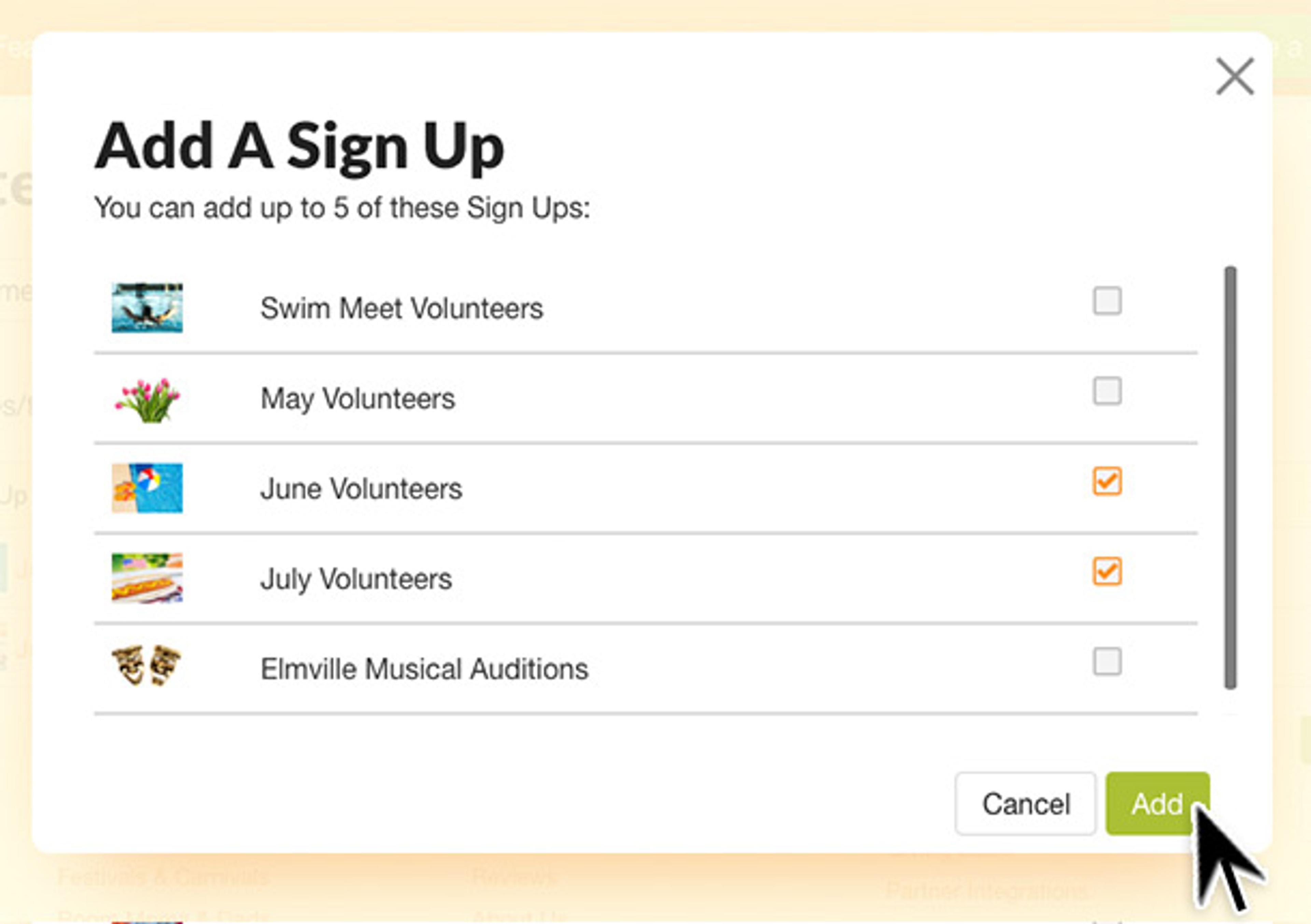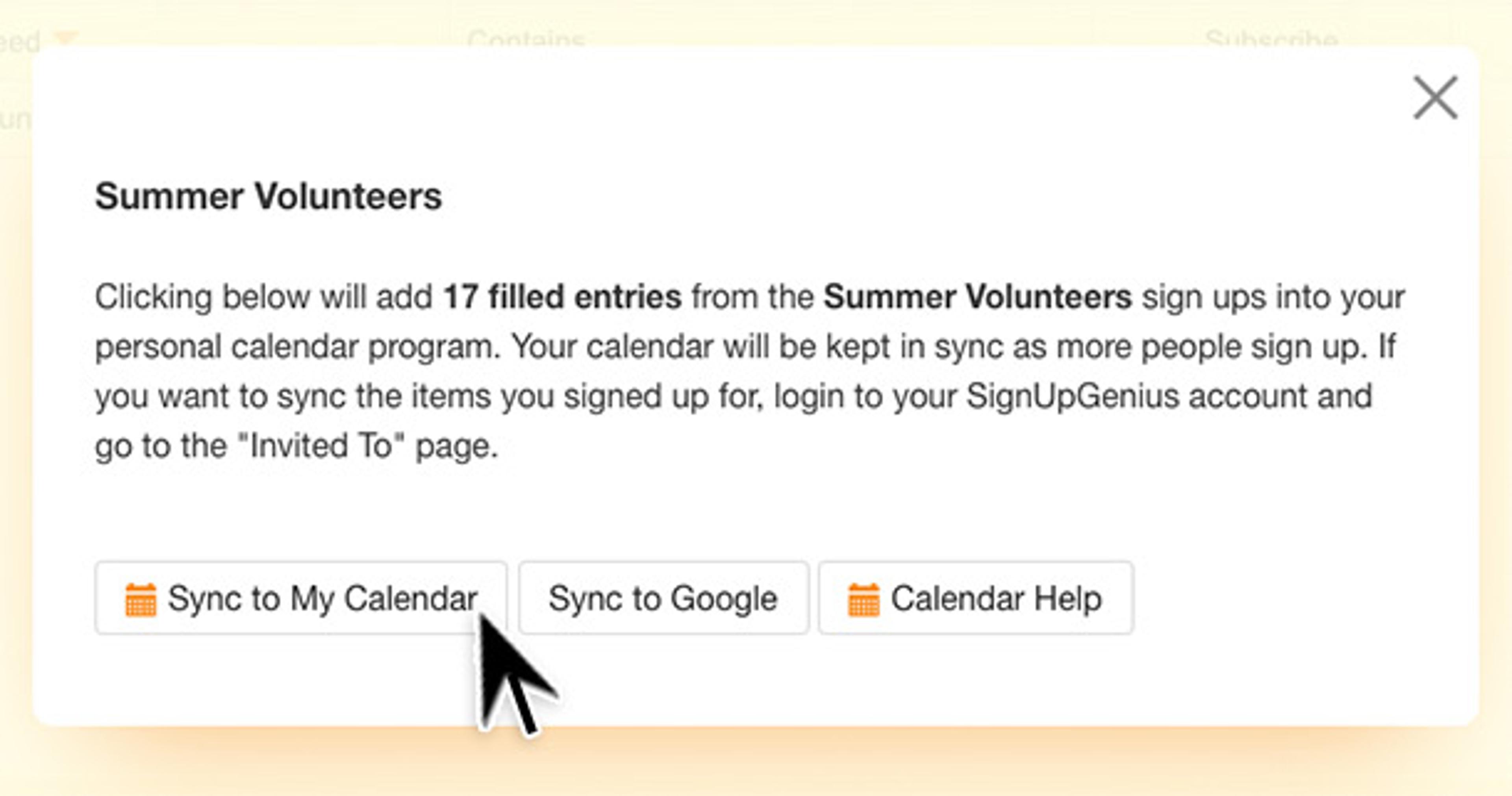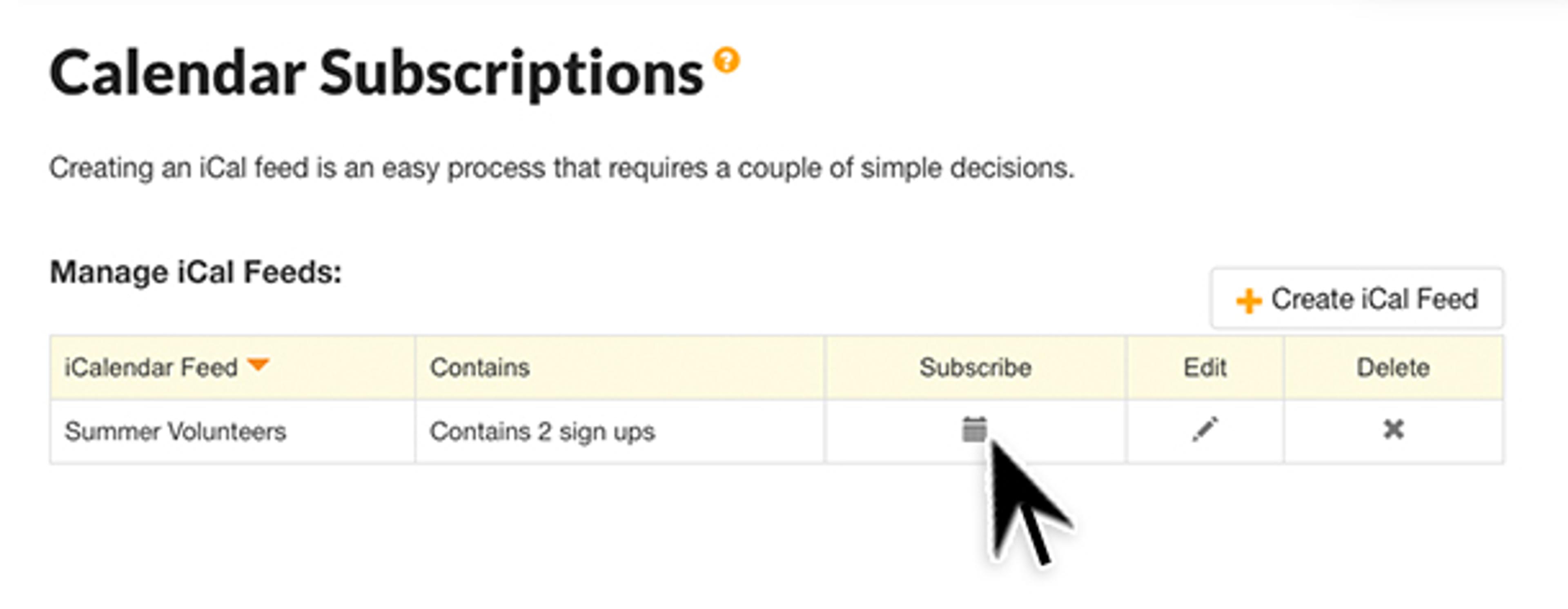 Paid subscribers and sub-admins assigned to the account can create a calendar feed with one or more sign ups and then sync the calendar feed to their personal digital calendar.