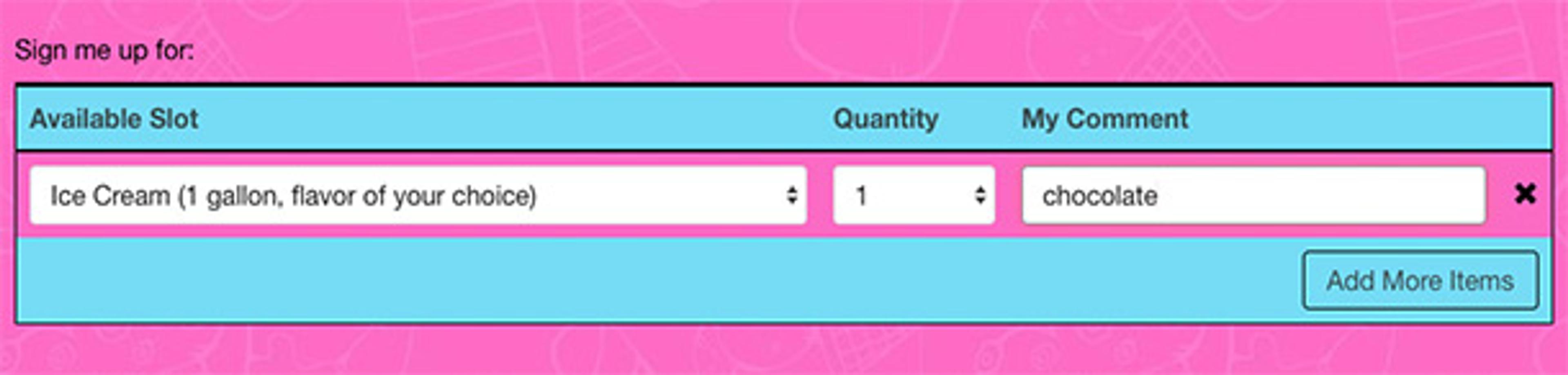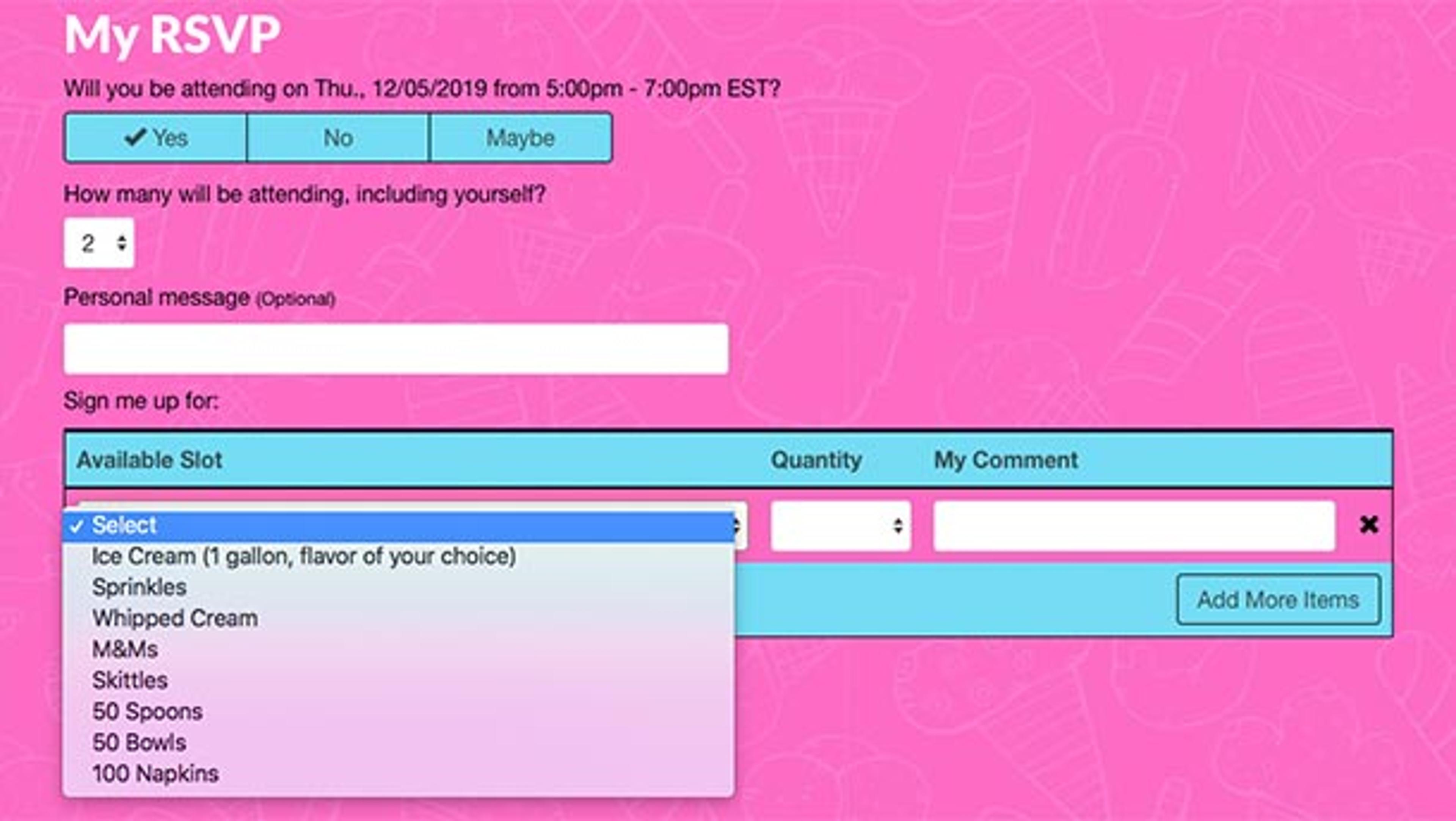 - If you want to sign up to bring an item for an event such as a potluck, you will see your options under the text reading Sign Me Up For.